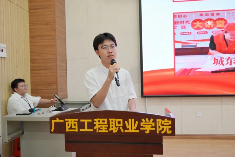 团委副书记李丽清号召同学们认真汲取榜样力量,鼓励学员学榜样的信念、精神和意识,要求将所学运用到实践中,发挥模范作用,传播正能量,为校园文化建设和学校的发展贡献力量。