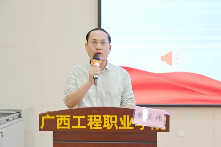 副校长黄德伟讲话,首先他向所有顺利完成学习的学员表示热烈的祝贺,并对一直以来辛勤工作的老师们表示衷心的感谢。他表示在“青马工程”培训中,我们通过理论授课、红色实践、朗诵、读书分享会、交流研讨等多种方式,全面提升了学员们的思想道德素养、政治理论水平和实践能力。我们欣喜地看到,学员们在学习生活、组织协作、精神面貌上都有了显著的提升和成长。