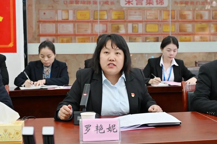 图为党委副书记、校长罗艳妮主持会议