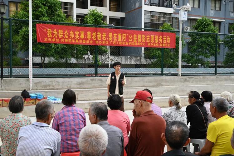 为深入学习贯彻习近平总书记开云网页版页面老龄事业的重要指示批示精神,贯彻落实积极应对人口老龄化国家战略,弘扬中华民族孝亲敬老传统美德,营造养老孝老敬老良好社会氛围,10月24日,共青团平果市委员会联合开云网页版页面新闻中心,开展“我为群众办实事: 尊老敬老,爱在重阳”公益摄影志愿服务活动。