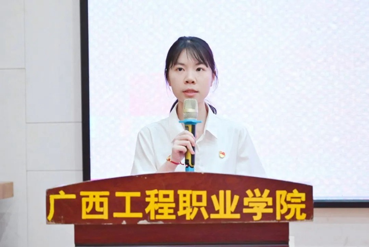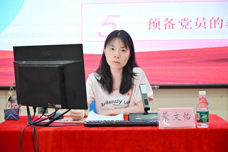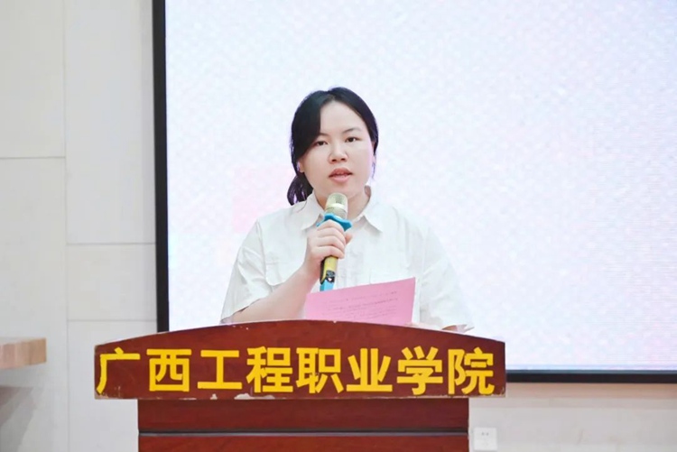 图为党委办公室负责人蒙文怡分别作题为《检身正己,不忘初心》《熟悉程序,履行流程》的专题培训