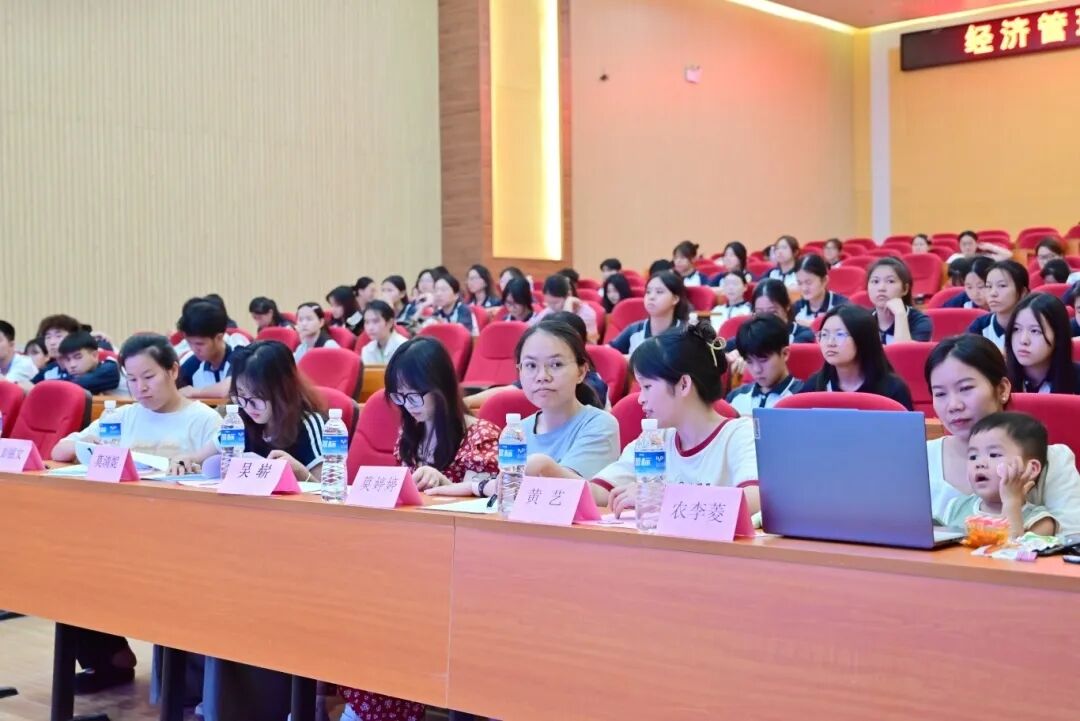经济管理学院党支部副书记潘翠萍及学院教师出席比赛现场。担任此次比赛的评委有:彭丽文老师、吴崭老师、莫清妮老师、李林蔚老师、李银老师。