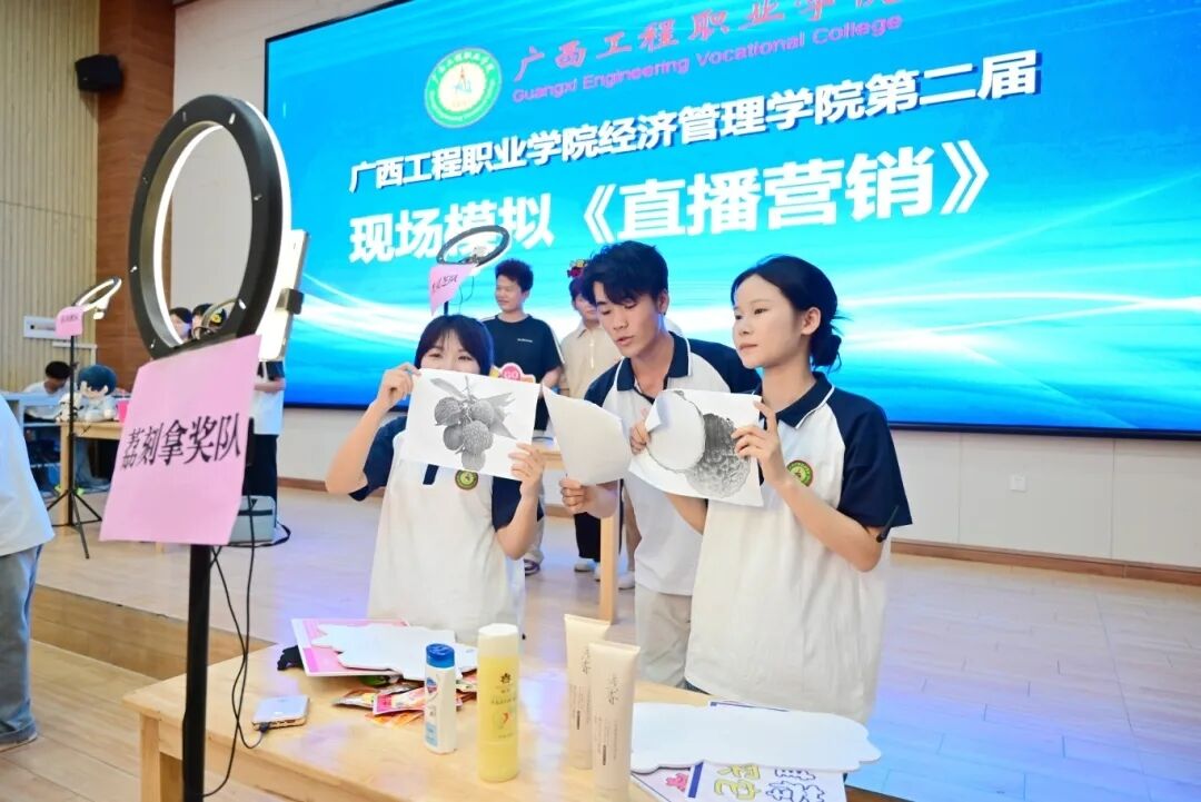 随着比赛正式开始,各参赛队伍依次登场,参赛选手们精神饱满,选手们充分发挥自己的专业知识和创新思维,直播带货模拟环节的精彩纷呈,选手们化身为专业电商主播,在模拟直播场景中自信展示。他们用生动的语言、富有感染力的表现,详细介绍商品特点和优势,巧妙运用直播话术与“观众”互动,营造出热烈的购物氛围。现场,选手们各展所长,有的以幽默风趣的风格吸引眼球,有的凭借专业的产品讲解赢得认可,充分展现了电商直播的魅力与活力。
