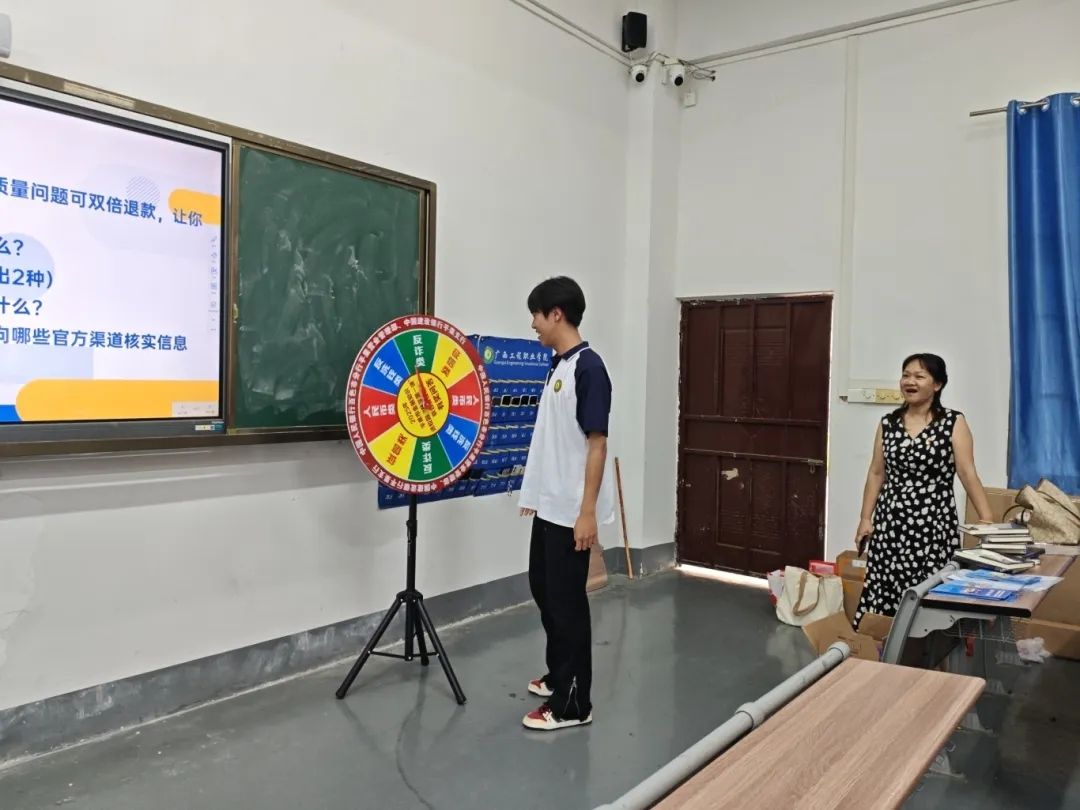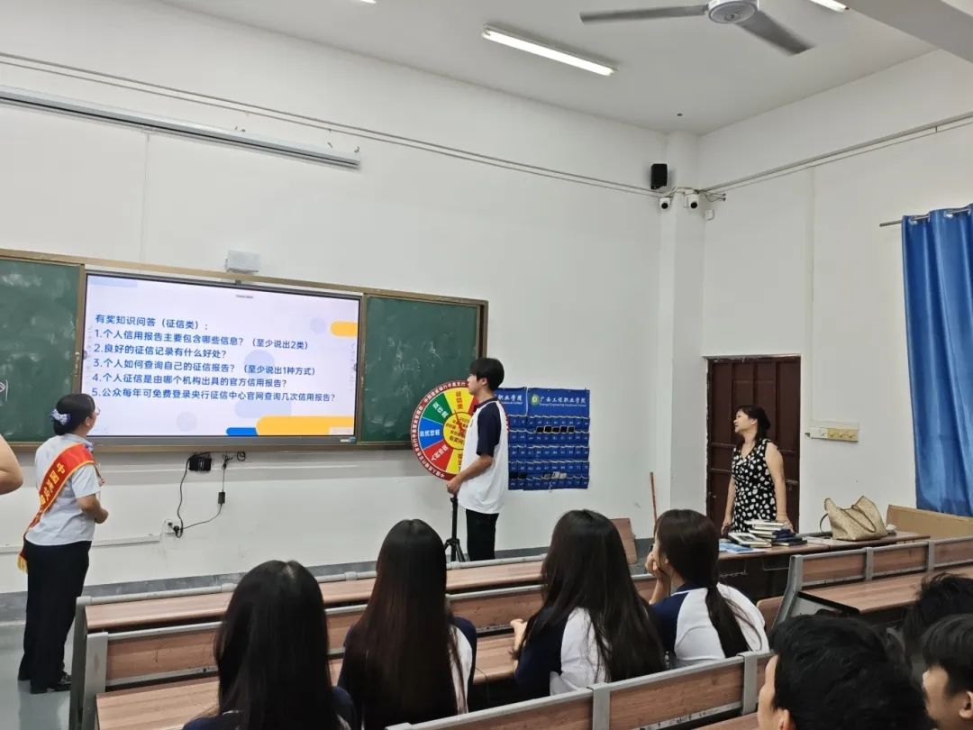讲座尾声的金融安全知识有奖竞答环节,将现场氛围推向高潮。同学们答题热情高涨,踊跃举手参与,在紧张又欢乐的互动中积极思考、比拼知识。这场趣味十足的竞答活动,让大家在轻松愉悦的氛围里巩固了金融安全知识,进一步提升了金融风险防范意识。