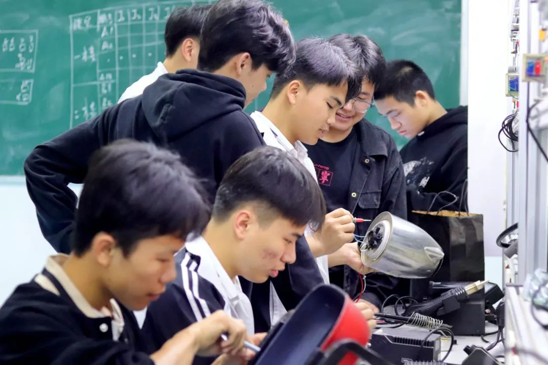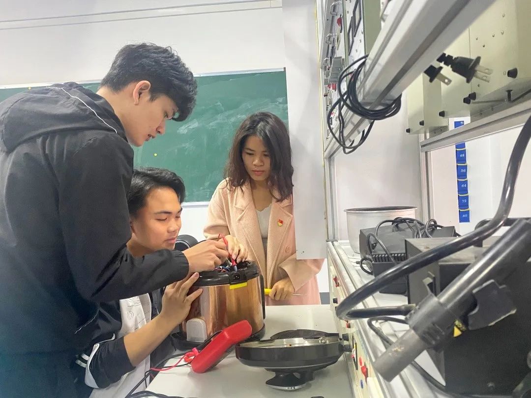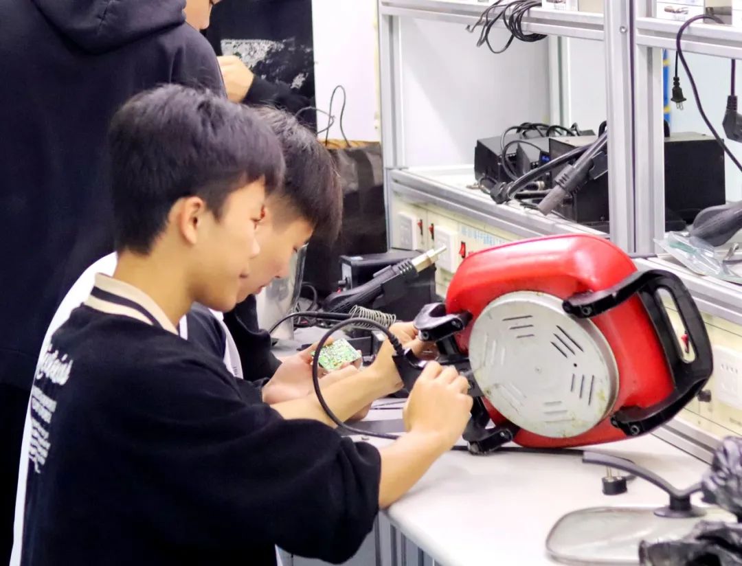 在维修实训室,学生志愿者们在张军华老师的指导下,凭着过硬的专业知识维修家电,以专业知识为师生办好事、办实事、解决生活实际困难和问题。汽车与机电学院党支部副书记邓镇连也到现场指导维修活动。