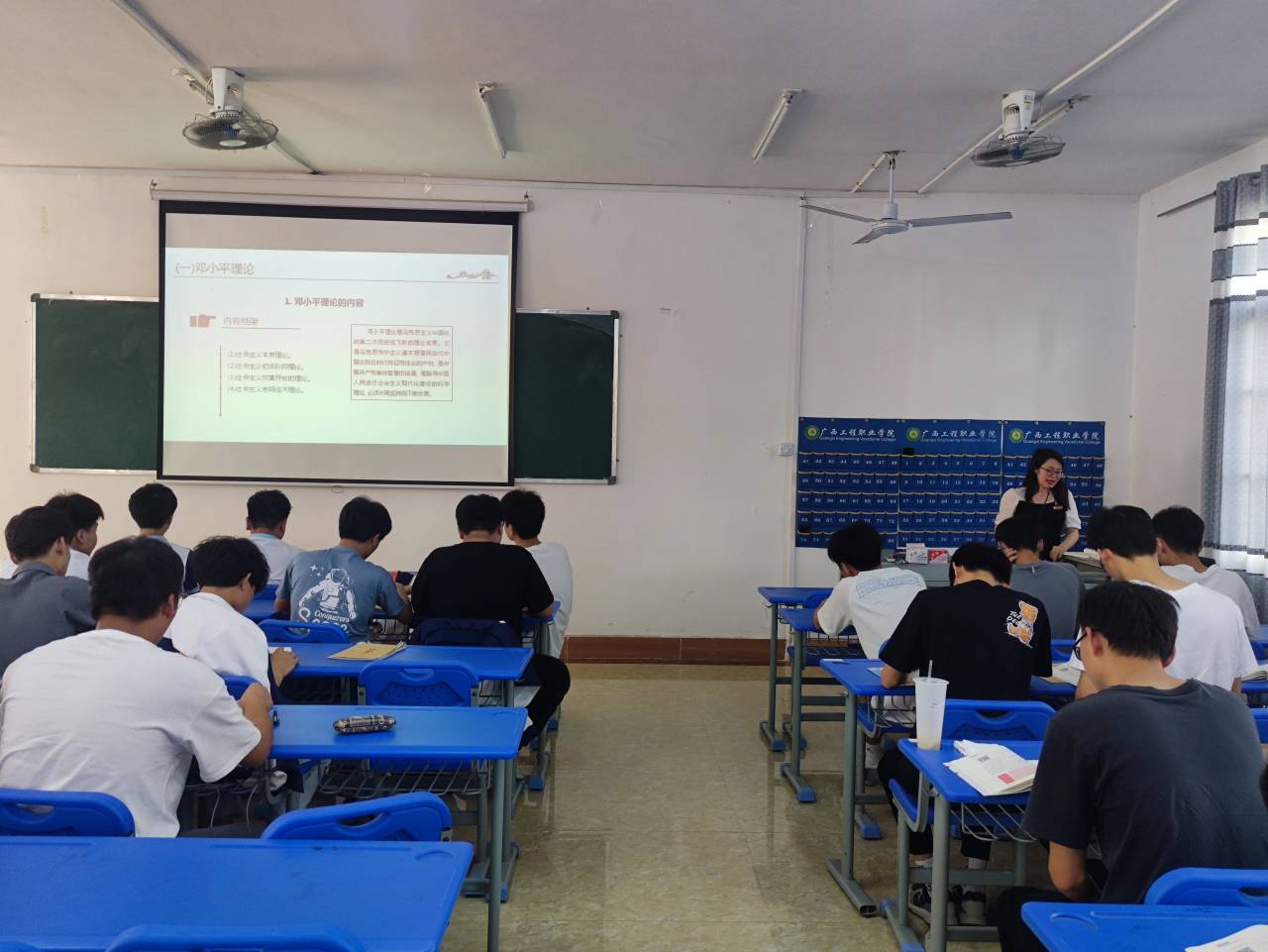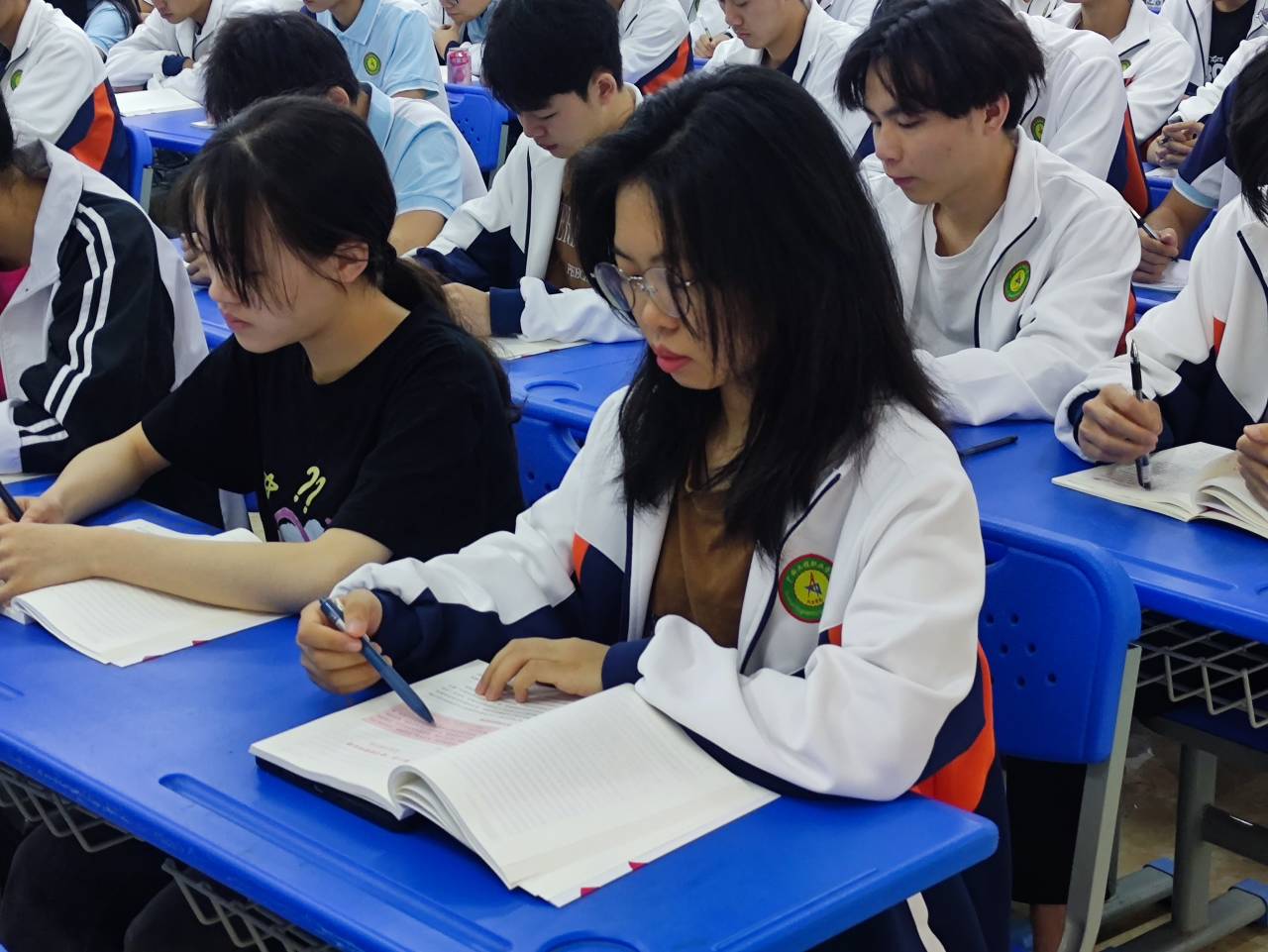 同学们认真上课、做笔记