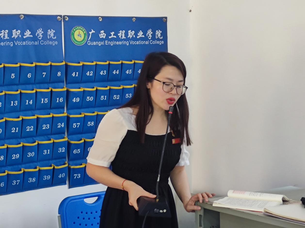 党支部书记覃凤姣同志作《党员的基本规范——党员的条件、义务和权利》专题培训