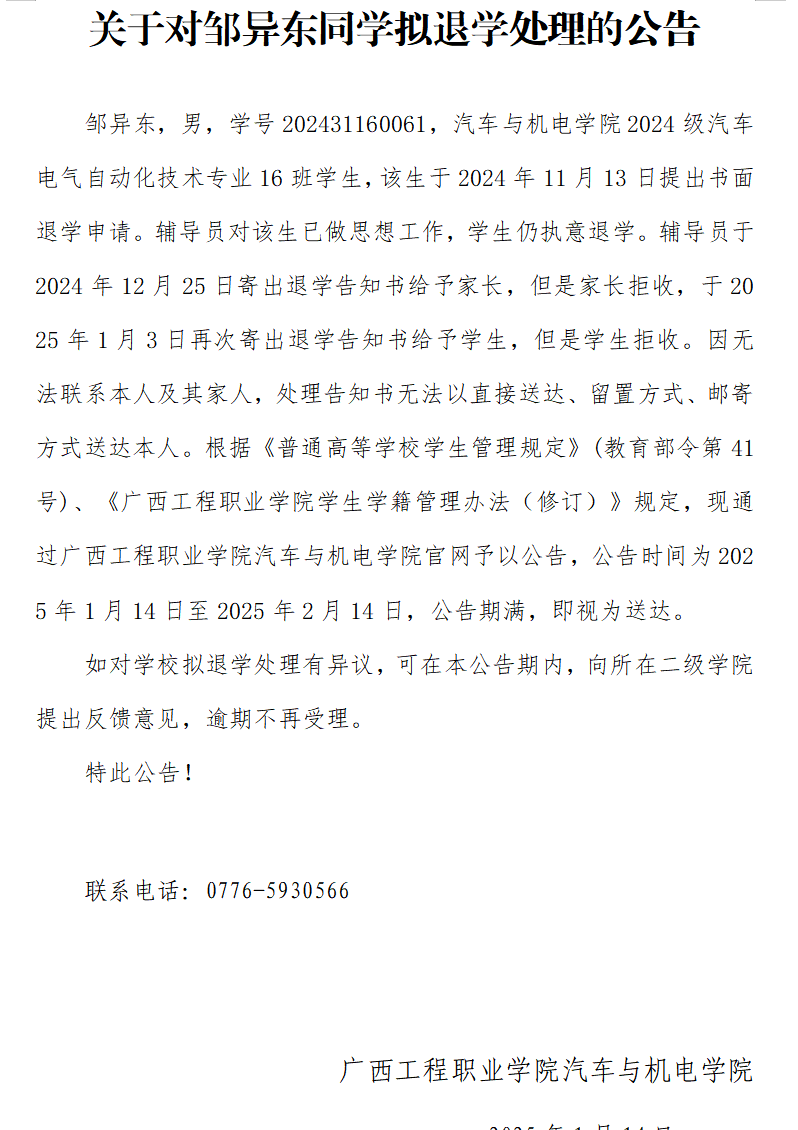 上一篇:开云网页版页面对蒋中标同学拟退学处理的公告