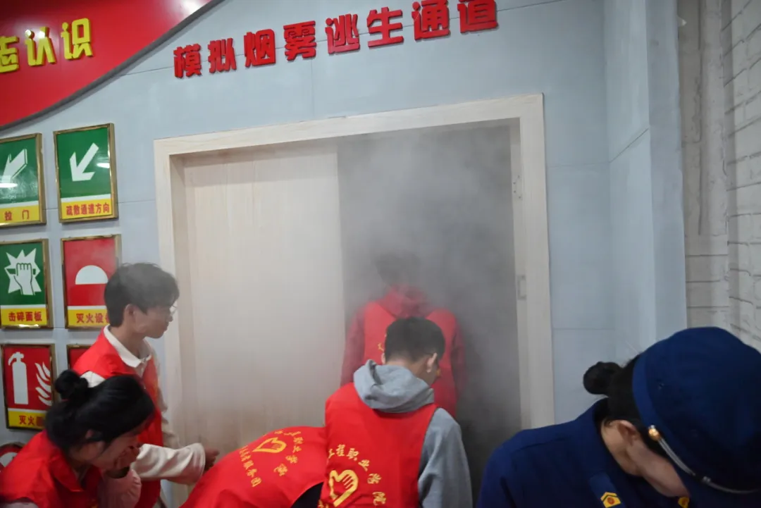 活动当天,由消防队员为同学们科普了如何预防火灾、如何报警、如何自救等消防安全常识,并详细讲解了消防衣、灭火器、应急照明灯等消防器材用途,普及了校园宿舍安全防火的相关知识。活动现场还进行了模拟火灾逃生演练,实地体验火灾发生时正确的疏散、逃生的过程。
