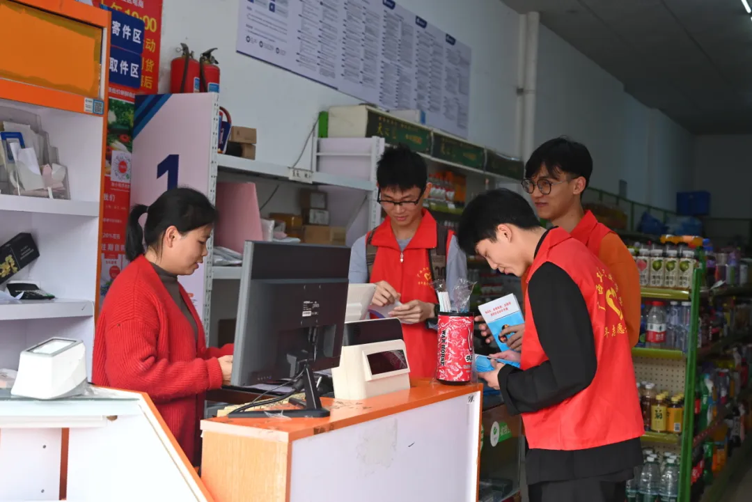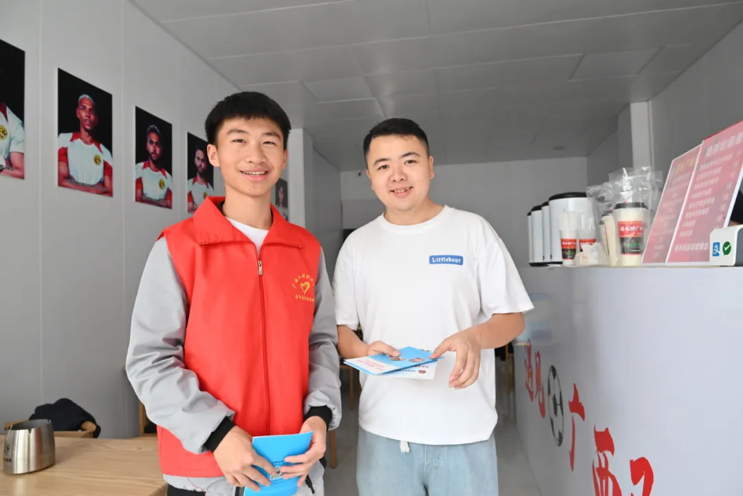 随后同学们与消防队员一同前往消防队附近的商铺、居民楼等开展了消防知识宣传活动,向市民们普及了火灾的危害、预防措施、自救互救等消防安全知识。同学们纷纷表示,通过参加活动进一步学习了消防安全知识和技能,深刻地亲身体会了消防员的艰辛和无私奉献的精神,并将积极地把消防安全知识分享给身边更多的人,真正做到防患于未“燃”。