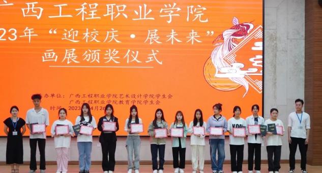 4月26日,开云网页版页面2023年“迎校庆·展未来”画展颁奖仪式在图文信息大楼报告厅举行,学校校长助理梁善雅、艺术设计学院副院长张清泉、艺术设计学院党支部副书记赵志辉、教育学院学生科科长李丽清、艺术设计学院学生科科长许富城等领导、老师出席颁奖仪式,艺术设计学院和教育学院师生代表出席颁奖仪式。颁奖仪式由黄敏同学主持。