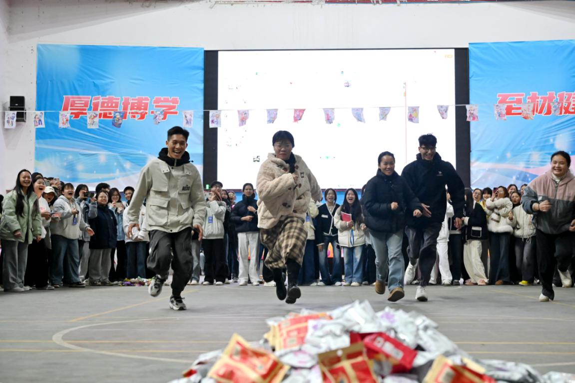 紧接着是趣味游戏环节,由学院学生科科长谢彩英讲解游戏规则,活动现场气氛热烈,趣味游戏环节更是将活动推向高潮。