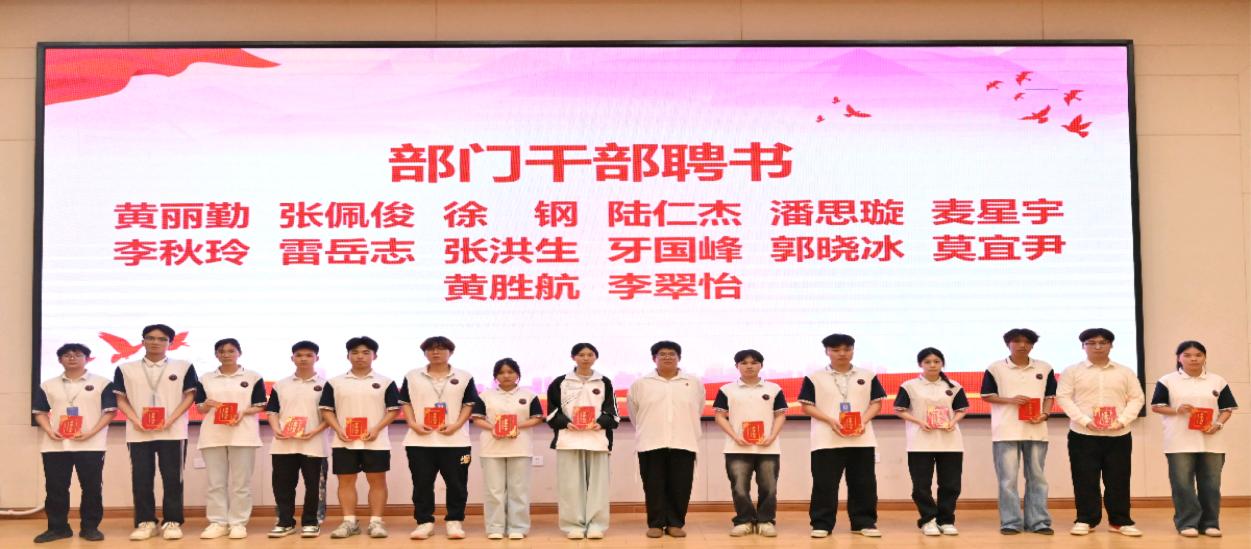 2025年6月8日下午,艺术设计学院第十届学生会换届暨表彰大会在图文信息大楼三楼学术报告厅顺利召开。出席本次大会的有艺术设计学院党支部书记兼院长覃凤姣、党支部副书记赵志辉、分团委书记李东英、办公室主任陈国昇、学院全体辅导员、学生会代表、第十届团学干部以及新当选的第十一届团学干部。