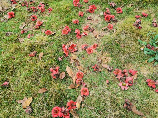 但草地上已经是落英缤纷。