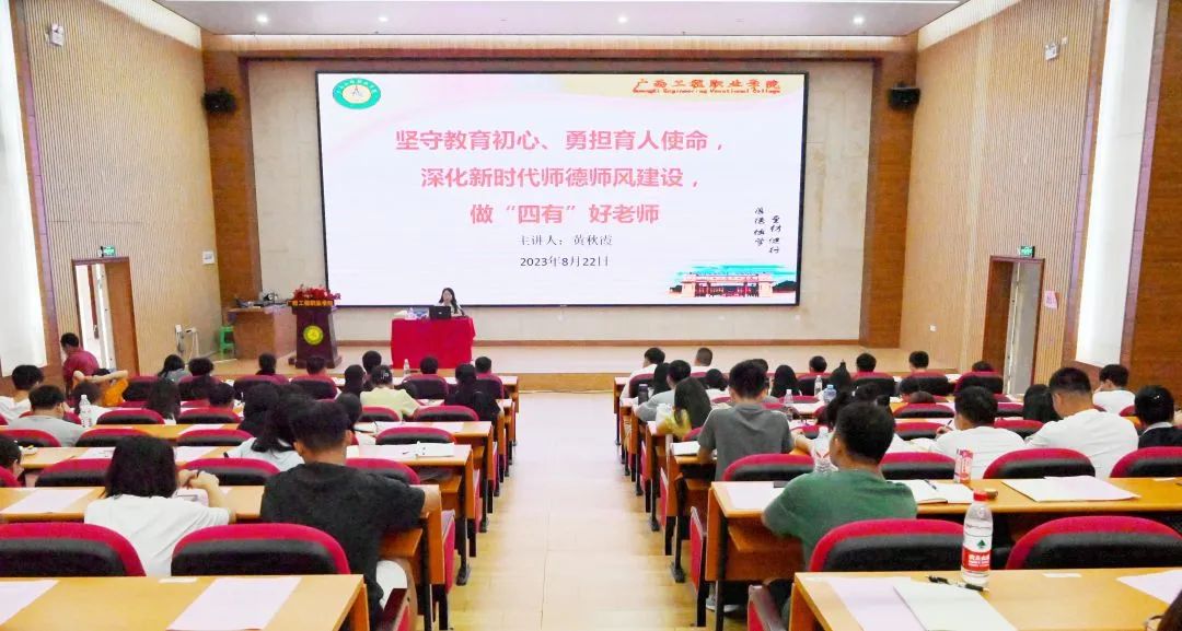 党委副书记黄秋霞作题为《坚守教育初心、勇担育人使命,深化新时代师德师风建设,做“四有”好老师》的专题培训,她希望全体新教师要以 “四有”好老师为标准,坚定理想信念,陶冶道德情操,涵养知识学识,勤修仁爱之心,踏实躬耕教坛,坚持做到“四个相统一”,努力成为业务精湛、能力高超、情怀深厚的新时代高校教师,培养德智体美劳全面发展的社会主义建设者和接班人,为实现中华民族伟大复兴做出贡献。