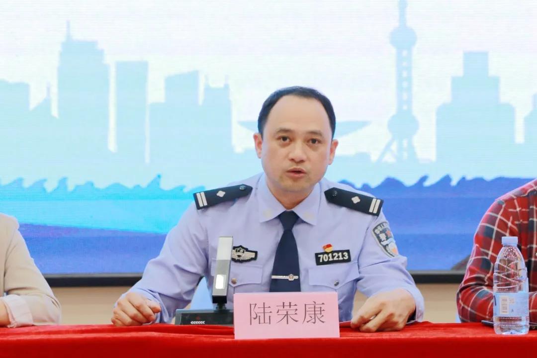 平果市打击传销工作领导小组办公室副主任、公安局副局长陆荣康作防范传销知识讲座