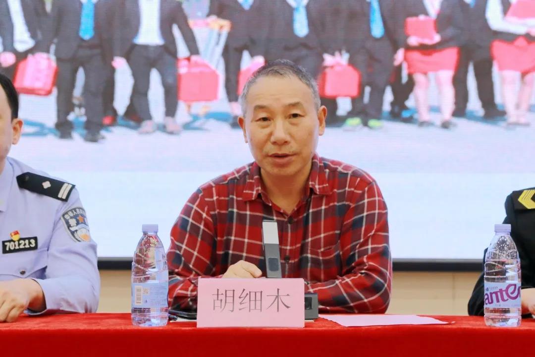 学校党委副书记、副校长胡细木致辞,他对平果市打击传销工作领导小组领导来校为师生作防范传销知识讲座表示感谢,并对同学们提出了要求,希望同学们珍惜此次学习的机会,树立正确的世界观、人生观、价值观以及就业观,认真聆听防范传销知识讲座,不断提高自我防范意识,保护自身生命和财产安全,营造共同抵制非法传销的校园氛围。