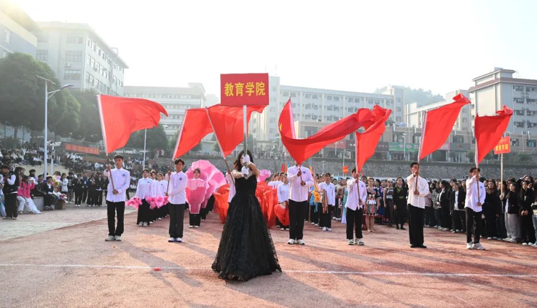 随后,各学院方阵的创意表演活力四射、异彩纷呈,激昂的歌声、动感的音乐、灵动的舞姿以及豪迈的口号声交织融汇,构成了一幅生动的校园画卷,传递了体育精神,展示了校园文化。