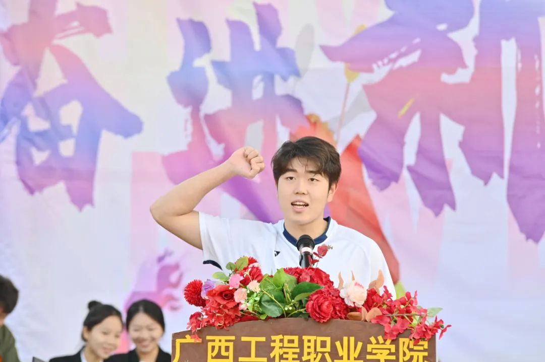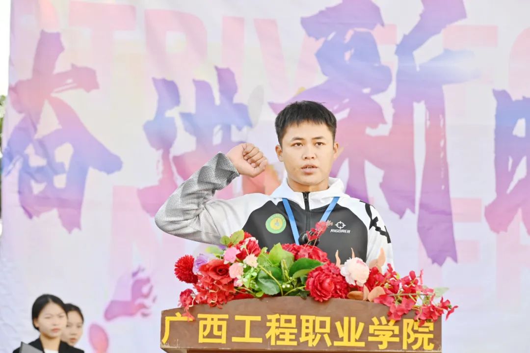 运动员代表土木工程学院2022级王钊轩同学宣誓,表示全体运动员将以积极、饱满、热情的态度参加本次运动会,弘扬更快、更高、更强的奥林匹克精神,在比赛中,服从裁判,服从指挥,遵守纪律,遵守规则;尊重裁判,尊重对手;团结协作,勇于拼搏;友谊第一,比赛第二;赛出风格,赛出水平。