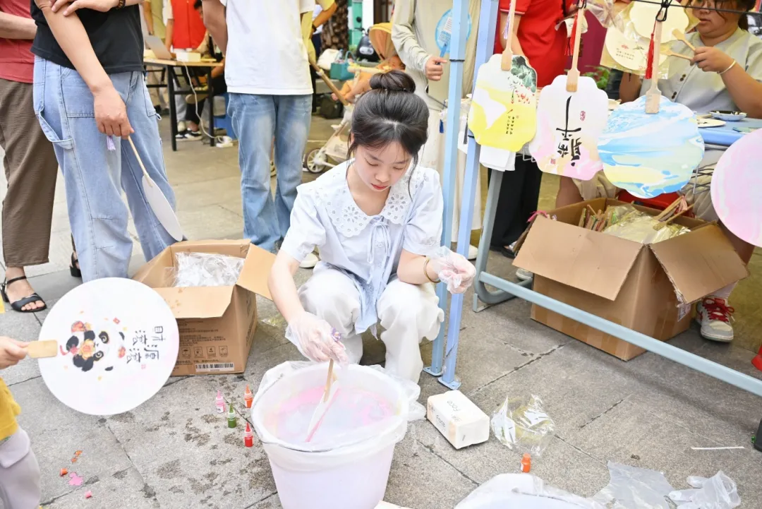 在手工体验区,漆扇制作、
