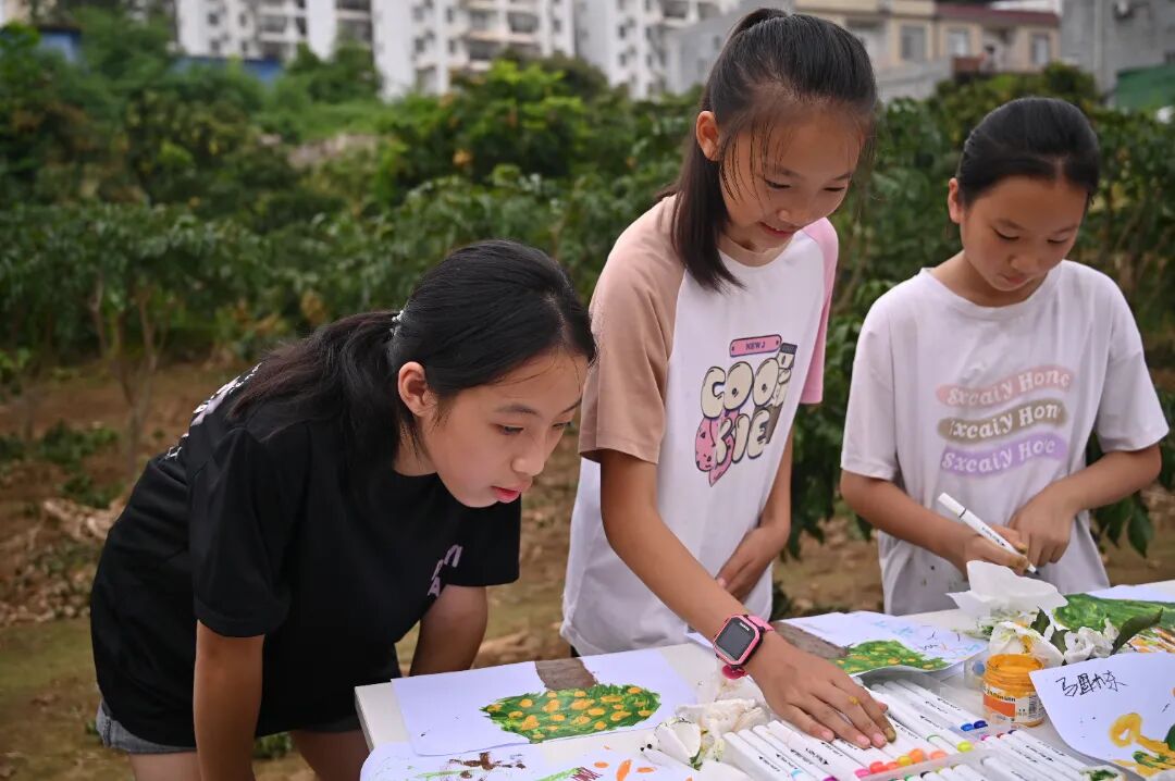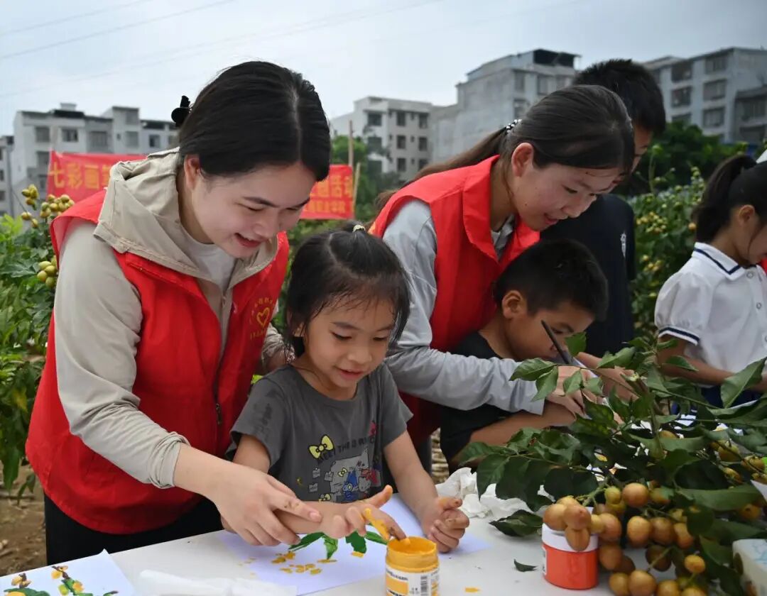 这场实践,是知识与自然的交融,也是青春与童真的对话。志愿者们借画笔传递对乡村产业的支持,和孩子们一起在劳作与创作中,感受乡土馈赠,让助农初心、童真童趣,都在黄皮果园里肆意生长,绘就乡村振兴路上的温暖风景。