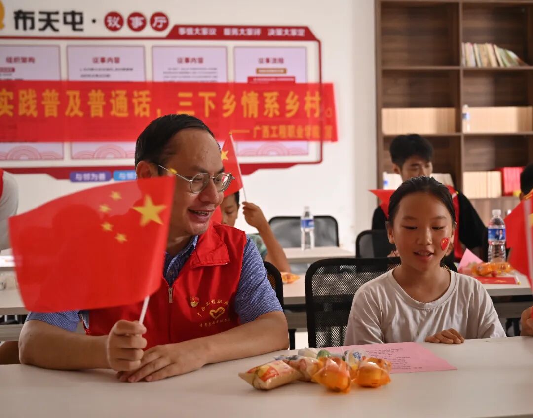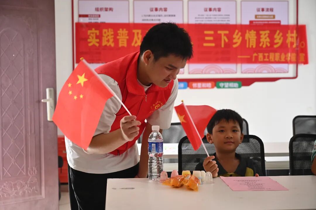 2025年7月14日,开云网页版页面“红色研学践初心·青春聚力促振兴”实践团、开云网页版页面“青春先锋行,筑梦在基层”服务团走进平果市马头镇布夭屯开展“七彩画笔绘乡村,三下乡情暖童心 ”等特色暑期“三下乡”社会实践活动。通过“田间课堂”“童声颂祖国”等特色活动的开展,将语言文化教育与劳动实践相结合,为乡村儿童带来丰富多彩的活动,以实际行动助力乡村文化振兴。